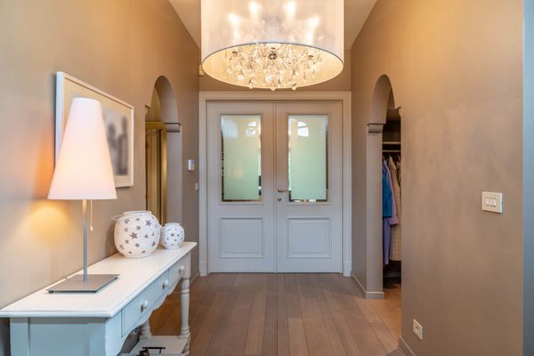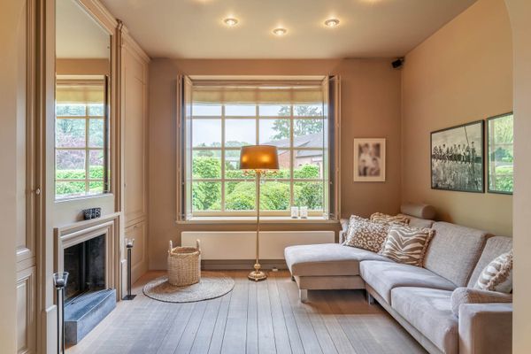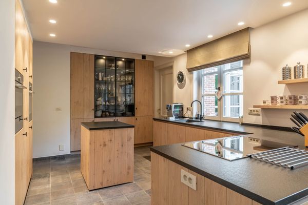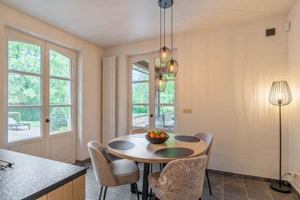 We betreden het gelijkvloers via de ruime inkomhal met gastentoilet en vestiaire. Deze geeft uit op de prachtige woonkamer met zicht op de tuin. Aansluitend vinden we de eetkamer die geniet van grote raampartijen en een zeer mooi uitzicht over de aangelegde tuin met volledige privacy. Naast de eetkamer is een zithoek gelegen, voorzien van op maat gemaakte inbouwkasten en een gezellige open haard. Verder is de keuken die recent volledig werd vernieuwd en is voorzien van alle luxe. De inkomhal geeft tevens toegang tot een gelijkvloerse slaapkamer met dressing en ensuite badkamer.