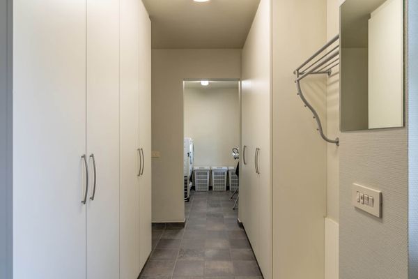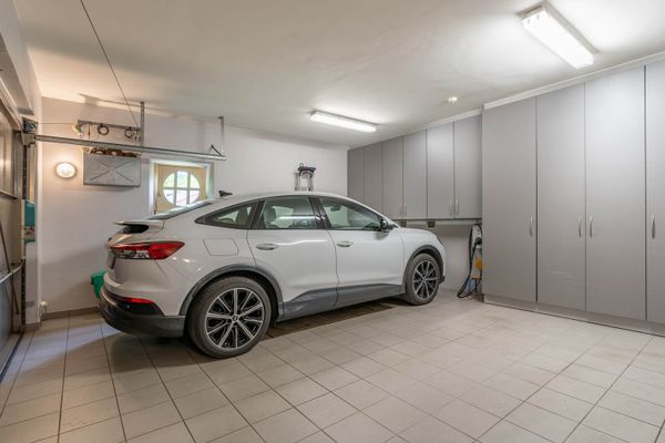 Via de keuken heeft u ook toegang tot de berging, een aparte wasplaats en de dubbele inpandige garage, voorzien van een geautomatiseerde poort. In de garage is bovendien een laadpaal voorzien. Hier vindt u ook het luik naar de kruipkelder onder de gehele woning.