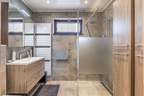 De badkamer met douche is recentelijk volledig vernieuwd en biedt genoeg mogelijkheden om te ontspannen of om u op te verfrissen en voor welverdiende me-time. De wasplaats biedt veel praktische ruimte voor al uw huishoudelijke taken en met de inpandige garage heeft u altijd voldoende ruimte voor de auto en nog extra plaats voor ander opbergmogelijkheden.