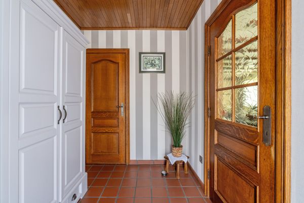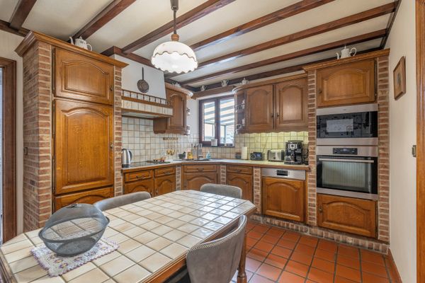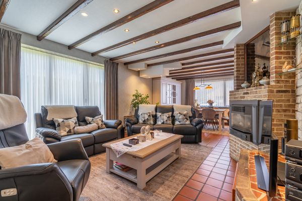 Bij het binnenkomen van de woning komen we via de mooie inkomhal, in de rustieke lichtrijke woon- en eetkamer. Er heerst een uitnodigende sfeer waarin u zich meteen thuis voelt. De keuken is warm ingericht en heeft zicht op de grote mooi onderhouden tuin.