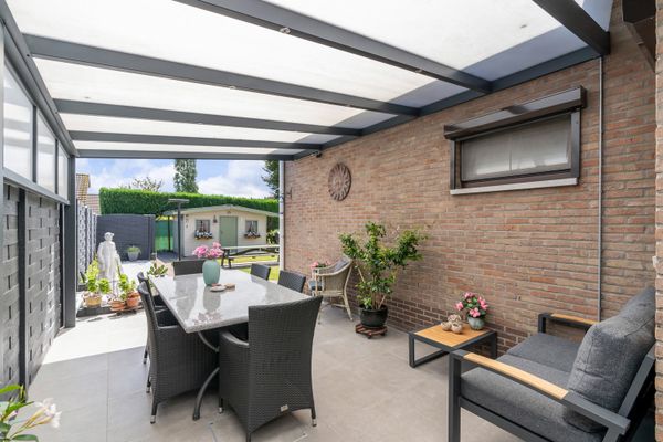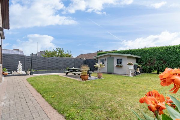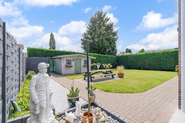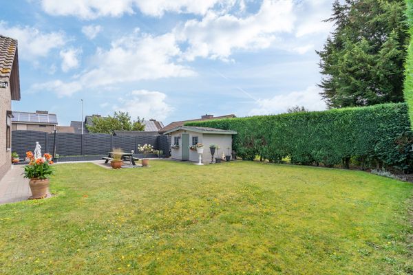 Stap naar buiten en ontdek de rustige tuin waarin u kunt ontsnappen aan de drukte van het dagelijks leven. Het overdekt terras biedt een extra troef, zo kan u nog lang 's avonds buiten genieten. Met een tuinhuis heeft u voldoende ruimte om al uw tuingereedschap op te bergen.