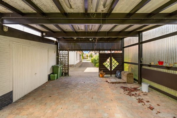 De indeling van de woning is als volgt: ruime inkomhal, woon-eetkamer, aparte keuken en bergruimte, nachthal, badkamer, 2 slaapkamers. Verder is er een inpandige garage en ruime carport.