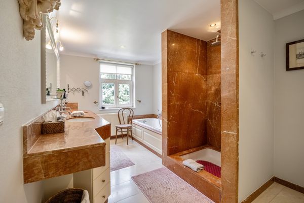 Op de verdieping bevinden zich vier slaapkamers, de grootste is voorzien van airconditioning. Bovendien zijn er 2 ruime badkamers: één met douche, en een tweede met zowel een ligbad als een inloopdouche. Er zijn 3 toiletten aanwezig in de woning.