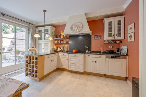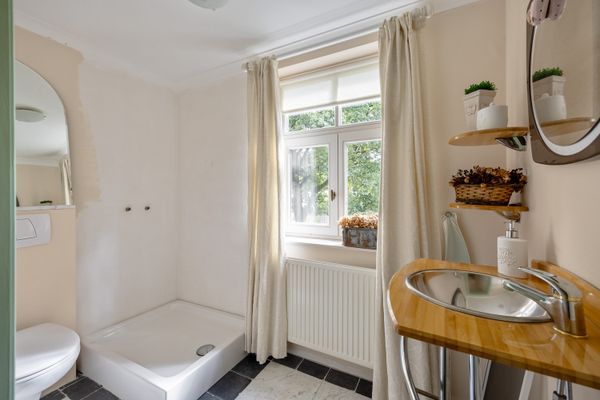 De leefruimte is een echte eyecatcher: een open woon- en eetkamer met grote raampartijen die zorgen voor een overvloed aan natuurlijk licht. Hier is het heerlijk vertoeven, of je nu samenkomt met familie of geniet van een rustige avond bij de haard. De keuken is praktisch én stijlvol ingericht, met directe toegang tot het terras, ideaal voor wie houdt van koken met zicht op de tuin.