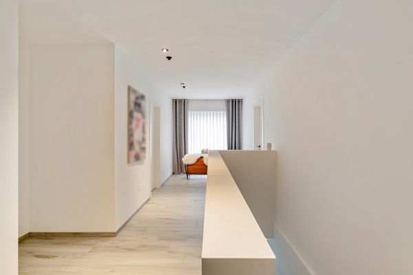 Verder is er een inkomhal, technische berging, hobbyruimte en garage (38 m²). De verdieping telt vier slaapkamers, twee badkamers, een nachthal en extra bergruimte.