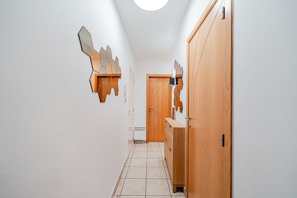 Verder beschikt het appartement over twee ruime slaapkamers, een apart gastentoilet en een hedendaagse badkamer dewelke in 2022 volledig is vernieuwd, afgewerkt met een comfortabele inloopdouche en een stijlvol badkamermeubel.