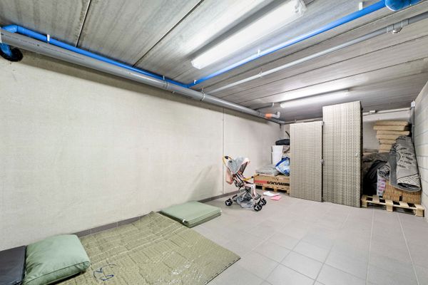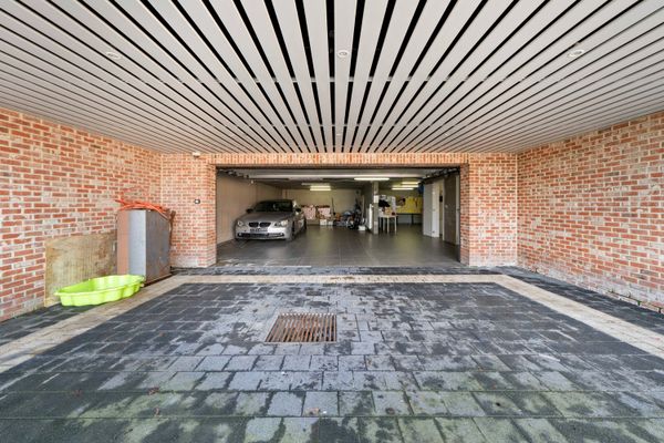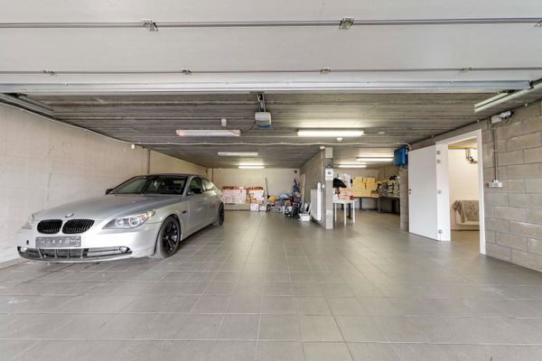 De ruime kelderverdieping biedt plaats aan twee wagens en beschikt over uitgebreide opslagmogelijkheden.