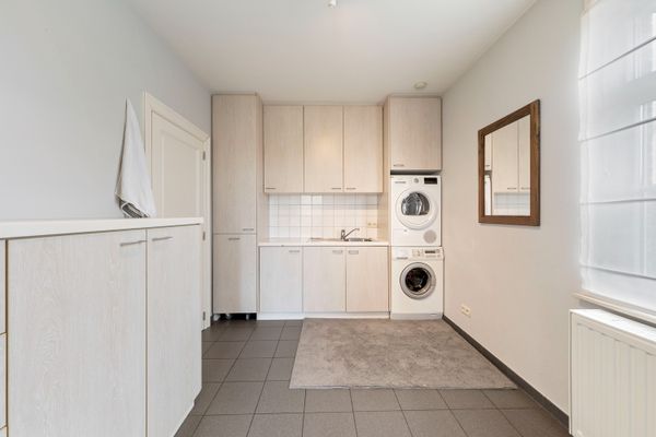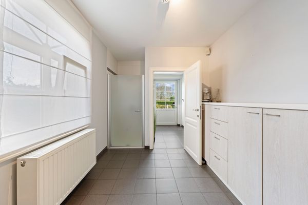 De lichtrijke woonkamer vormt het hart van de woning en biedt een aangename leefruimte met zicht op de tuin. Aansluitend bevindt zich de charmante, landelijke keuken, ideaal voor wie houdt van gezellig en functioneel koken. Verder vindt u op deze verdieping een praktische wasplaats en extra bergruimte.