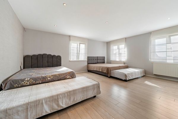 Op de eerste verdieping bevinden zich drie volwaardige slaapkamers, waarvan één met dressing, en een badkamer. De zolderverdieping herbergt nog eens drie extra kamers die perfect kunnen dienen als slaapkamers, hobbyruimte of polyvalente invulling. Wat dus maakt dat er 6 slaapkamers zijn (met mogelijkheid tot een 7e in de bureauruimte)